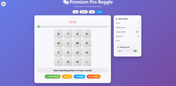 Premium Pro Boggle is a stylish, fast-paced word puzzle inspired by classic letter-grid games.